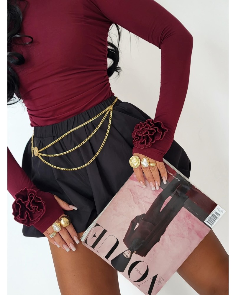Bluzka z długim rękawem wykończona dekoracyjnymi aplikacjami kwiatowymi przy mankietach. Elastyczna, dopasowana i efektowna, idealna do eleganckich oraz codziennych stylizacji.