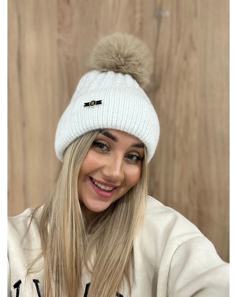 Zdobiona elegancką przypinką z logo oraz puszystym pomponem z eko futerka, łączy w sobie funkcjonalność i modny wygląd. Klasyczny fason idealnie dopasowuje się do głowy, nie uciskając i nie tracąc kształtu.