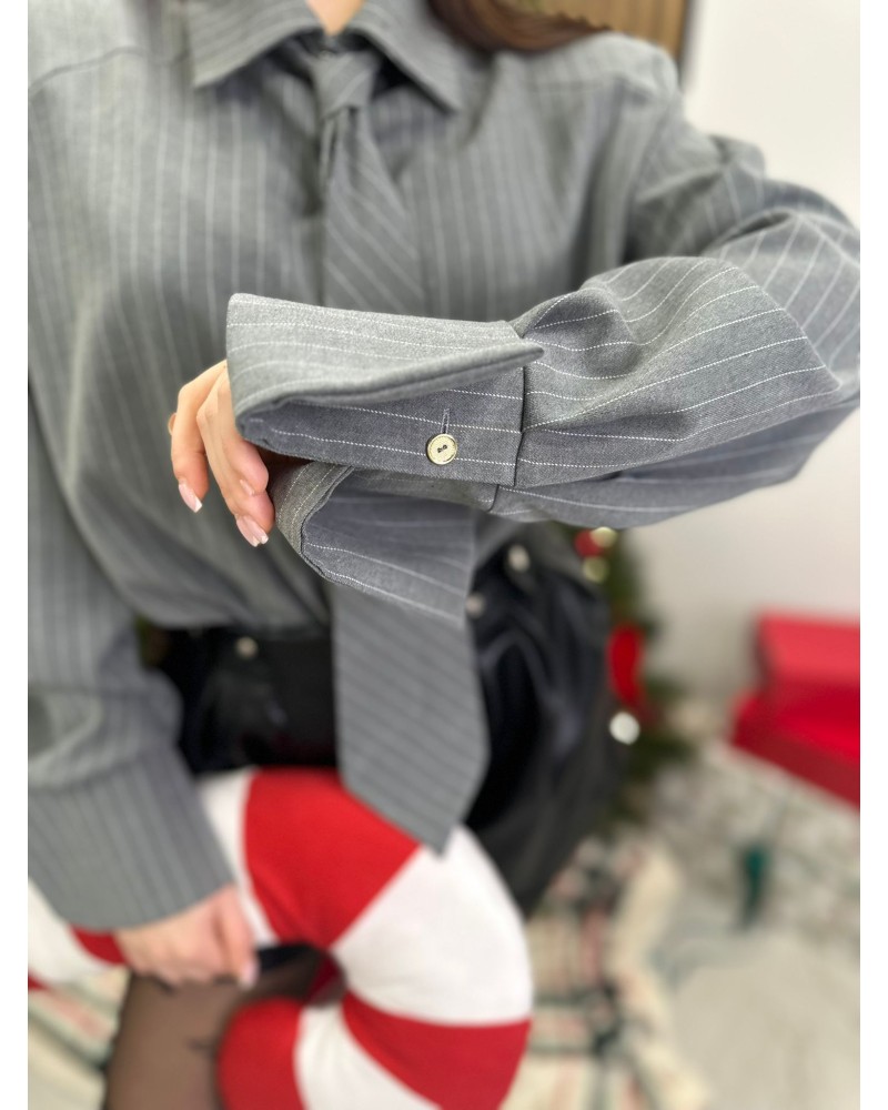Stylowa koszula oversize z eleganckim krawatem to absolutny hit sezonu – idealna dla kobiet, które kochają modę z charakterem.