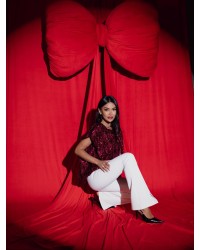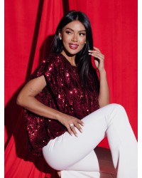 Bluzka cekinowa o efektownym wykończeniu i dopasowanym fasonie. Idealna propozycja na wieczorne wyjścia, imprezy oraz stylizacje okazjonalne.