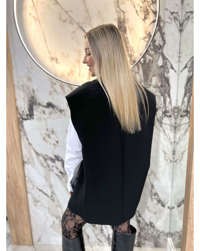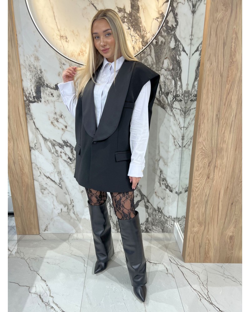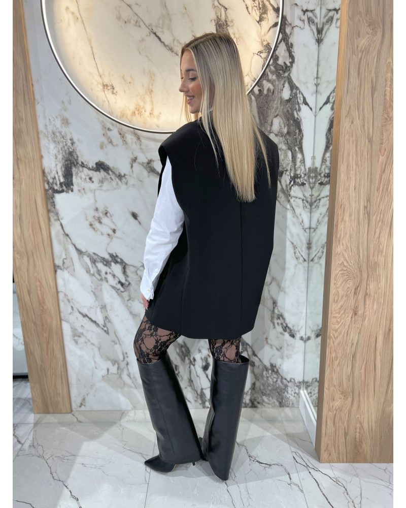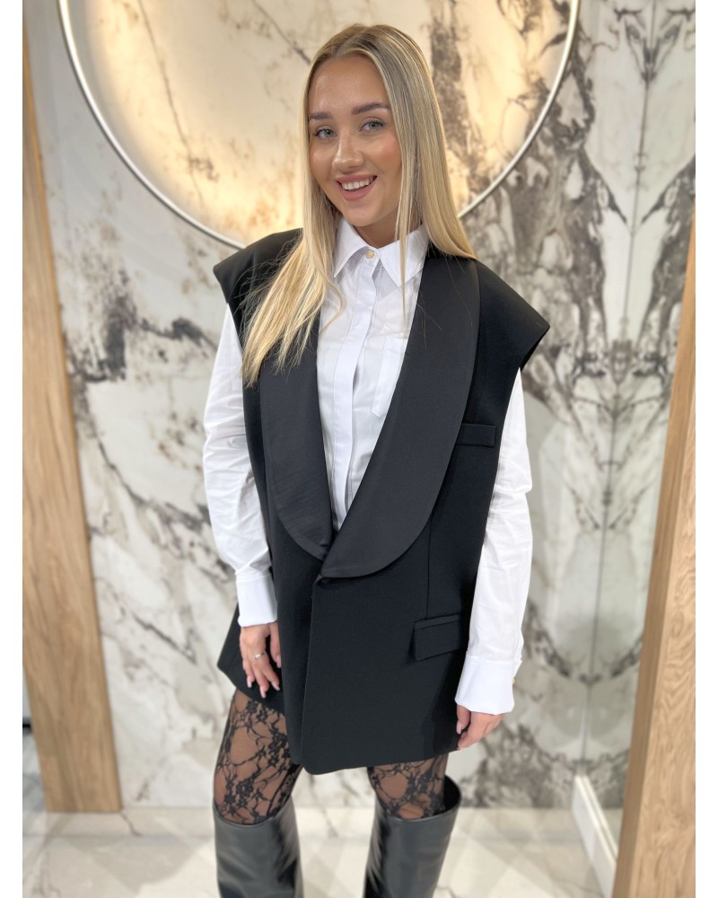 Elegancka kamizelka damska o kroju marynarki z szerokimi klapami. Stylowy model idealny do nowoczesnych i formalnych stylizacji.