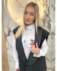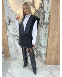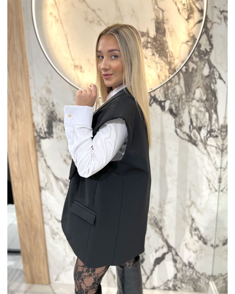 Szerokie klapy nawiązujące do klasycznej marynarki nadają całości elegancki wygląd, a staranne wykończenie sprawia, że kamizelka prezentuje się niezwykle stylowo zarówno noszona samodzielnie, jak i w zestawieniu z koszulą czy dopasowanym topem. Praktyczne kieszenie zwiększają funkcjonalność, zachowując jednocześnie elegancki charakter produktu.