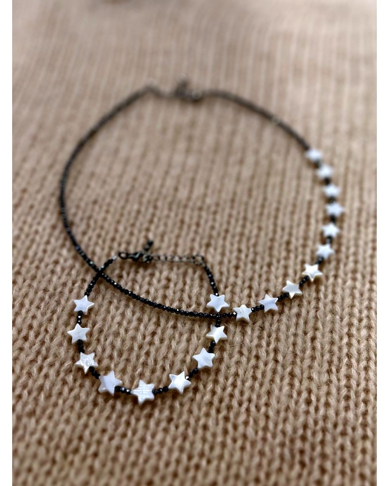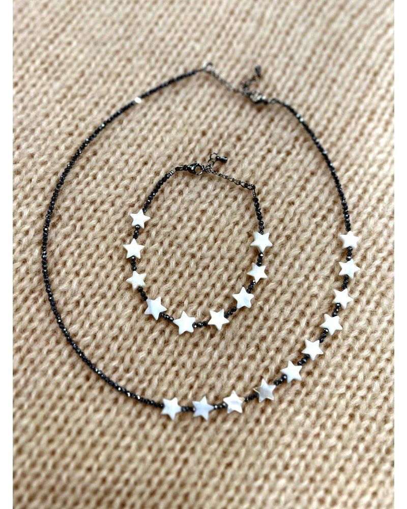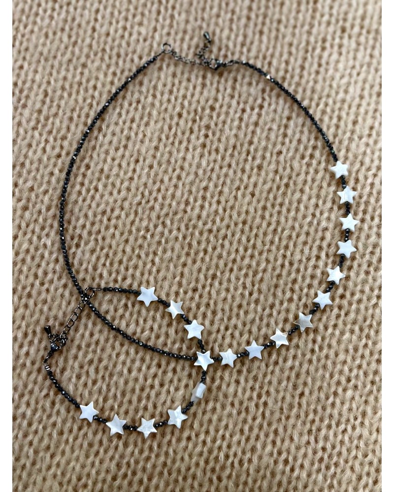 Motyw gwiazdek nadaje biżuterii lekkości i kobiecego charakteru, a drobne elementy tworzą efektowną, ale nienachalną kompozycję. Regulowane zapięcia umożliwiają wygodne dopasowanie naszyjnika i bransoletki do indywidualnych potrzeb.