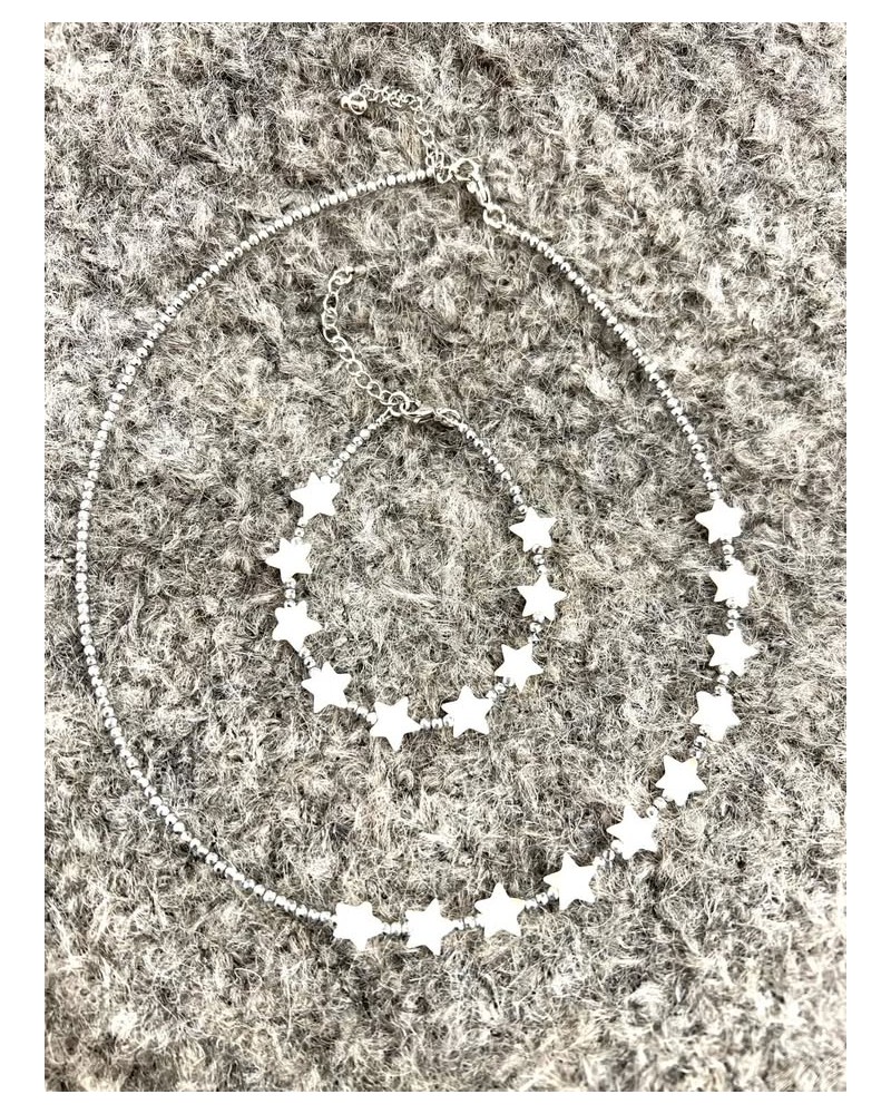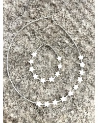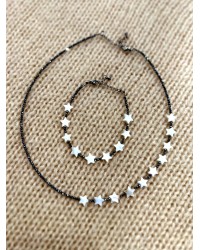Elegancki zestaw biżuterii damskiej składający się z naszyjnika oraz bransoletki z dekoracyjnym motywem gwiazdek to subtelna propozycja dla miłośniczek delikatnych dodatków. Minimalistyczna forma sprawia, że komplet doskonale uzupełnia zarówno codzienne stylizacje, jak i bardziej eleganckie zestawy.