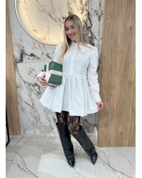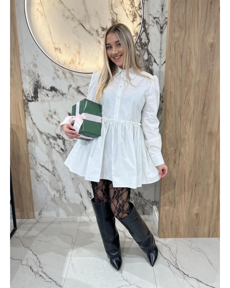 Koszula z rozkloszowanym dołem i taliowaniem, łącząca klasykę z subtelnym, dziewczęcym wykończeniem. Idealna do codziennych i eleganckich stylizacji.