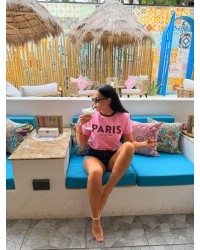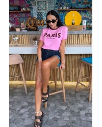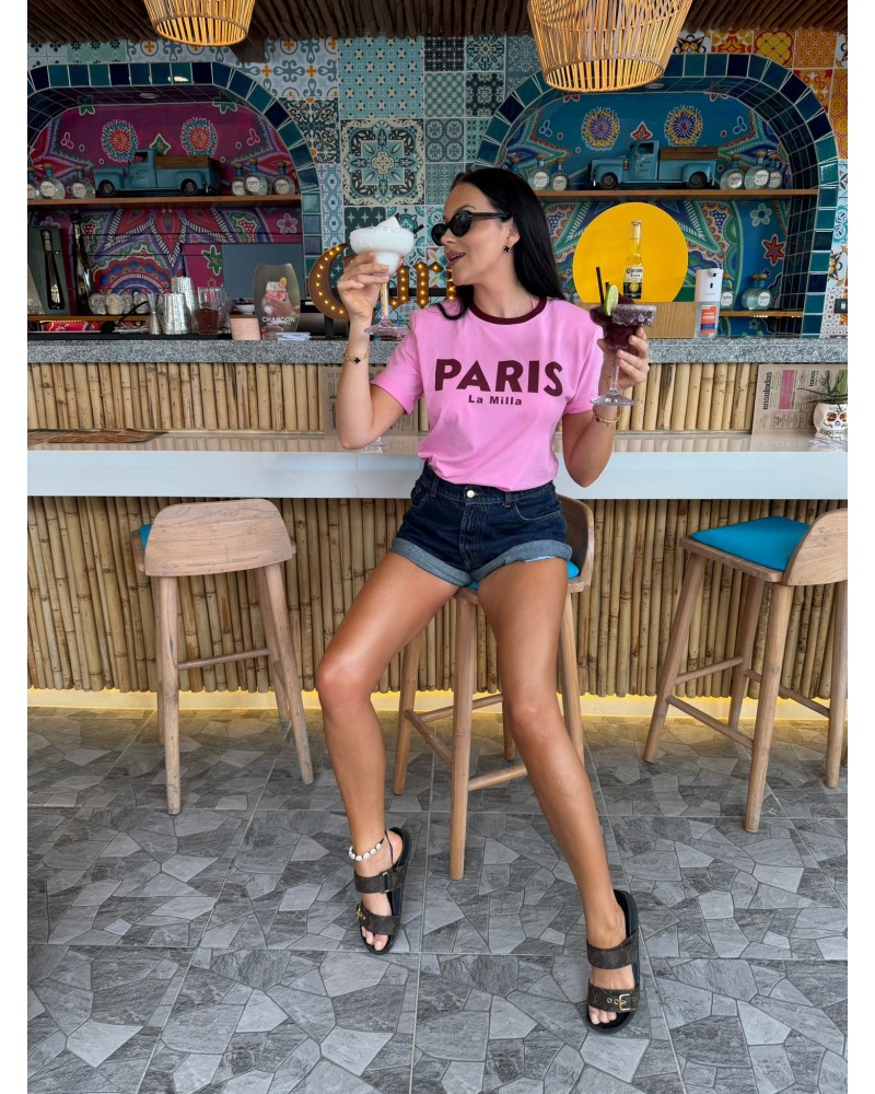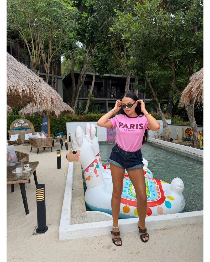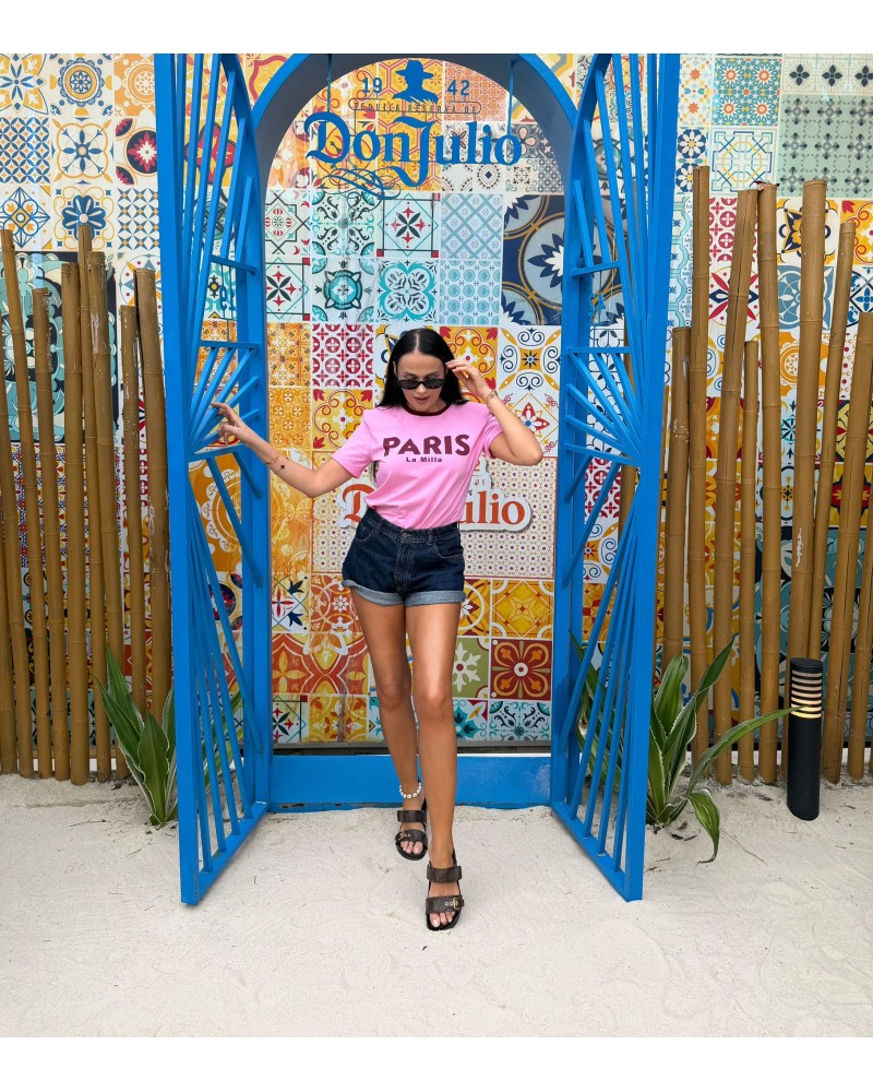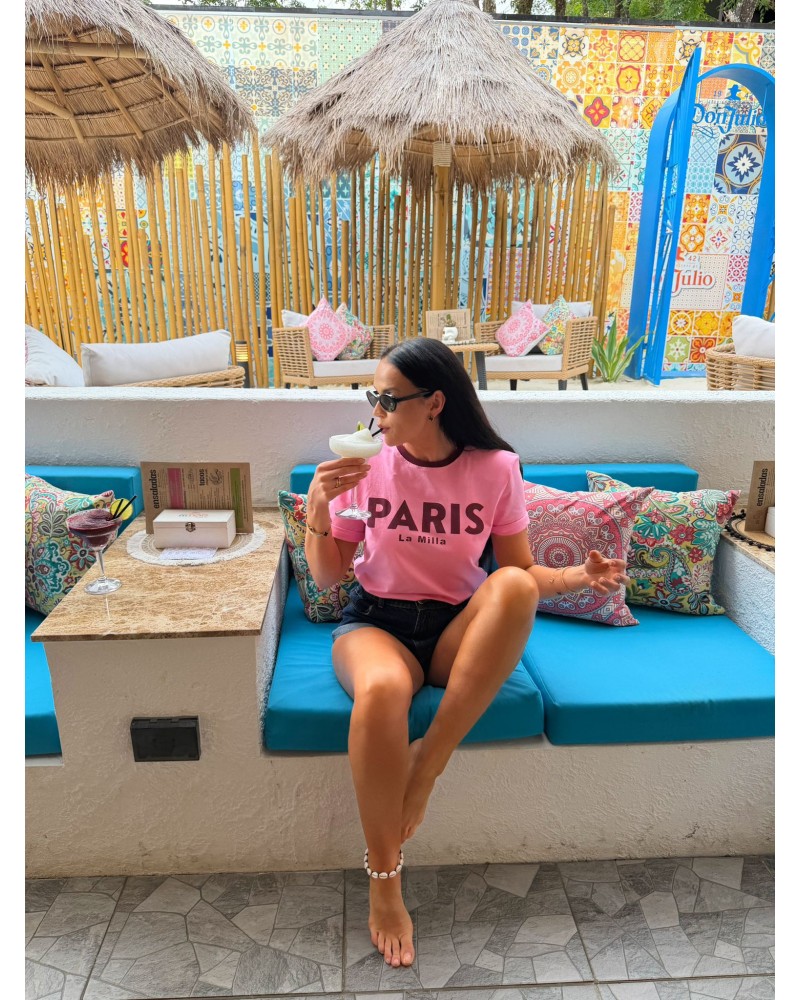 T-shirt damski La Milla z nadrukiem „Paris”, wykonany z miękkiej bawełny. Klasyczny krój z okrągłym dekoltem, idealny do stylizacji casualowych i miejskich.