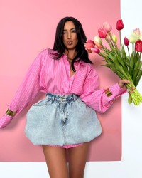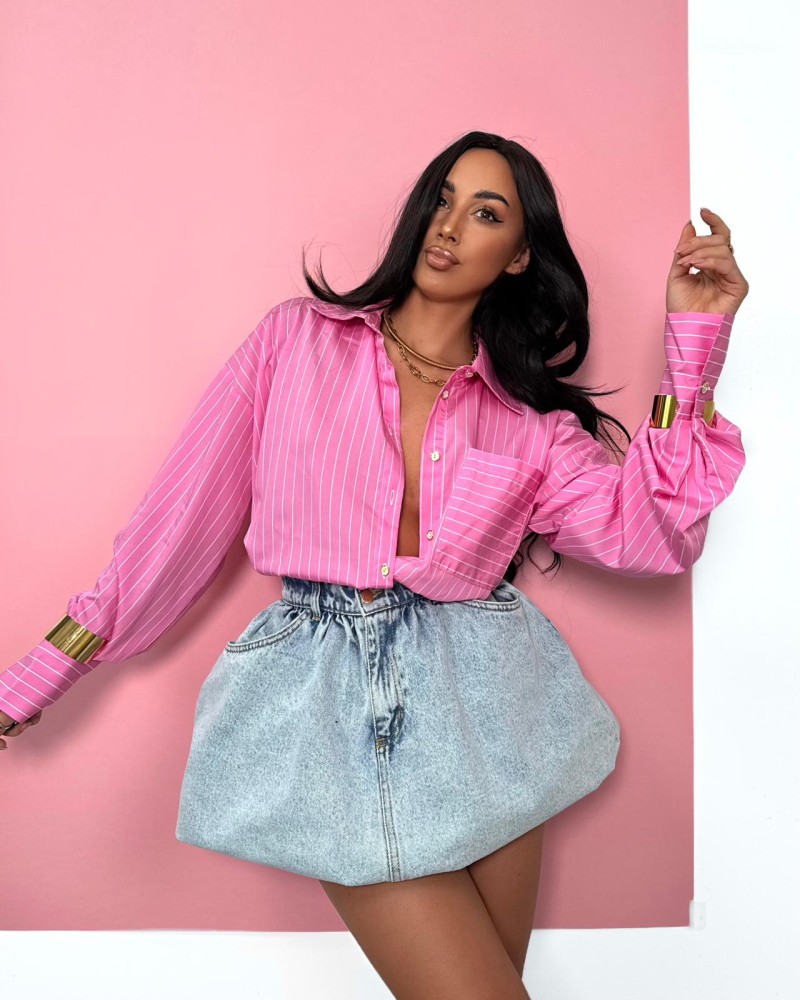 Koszula damska w paski, zapinana na guziki, o luźnym kroju. Lekki materiał i klasyczny kołnierzyk do stylizacji codziennych i miejskich.