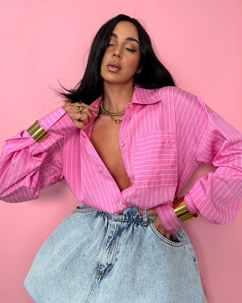 Koszula damska w paski to połączenie klasycznej elegancji z nowoczesnym, swobodnym stylem. Model zapinany na guziki, z klasycznym kołnierzykiem i długim rękawem, zapewnia wygodę noszenia oraz uniwersalność stylizacji.