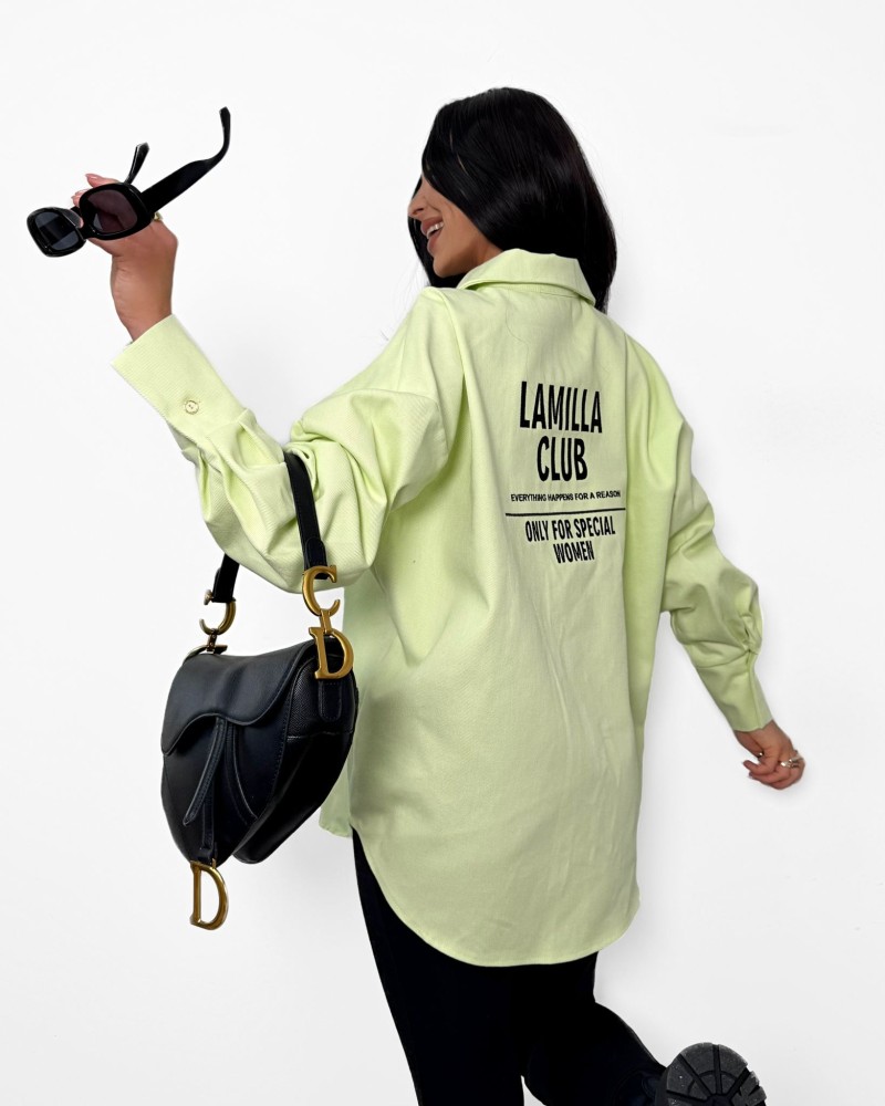 Model zapinany na guziki, z klasycznym kołnierzykiem i długim rękawem, doskonale sprawdzi się jako samodzielny element stylizacji lub jako narzutka na top czy t-shirt. Nadruk umieszczony na plecach podkreśla indywidualny styl i wyróżnia koszulę na tle klasycznych modeli.