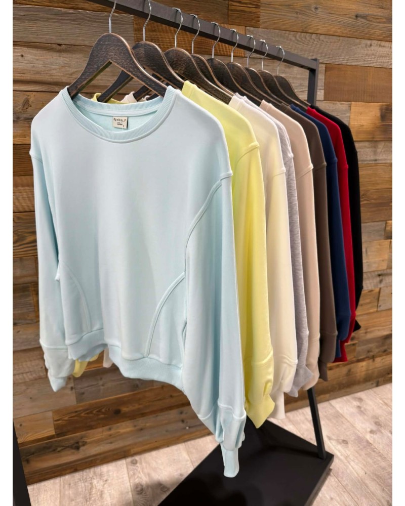 Modna oversizowa bluza. Charakterystyczne, dekoracyjne przeszycia nadają jej oryginalnego charakteru i podkreślają luźny, swobodny fason, który świetnie układa się na sylwetce.