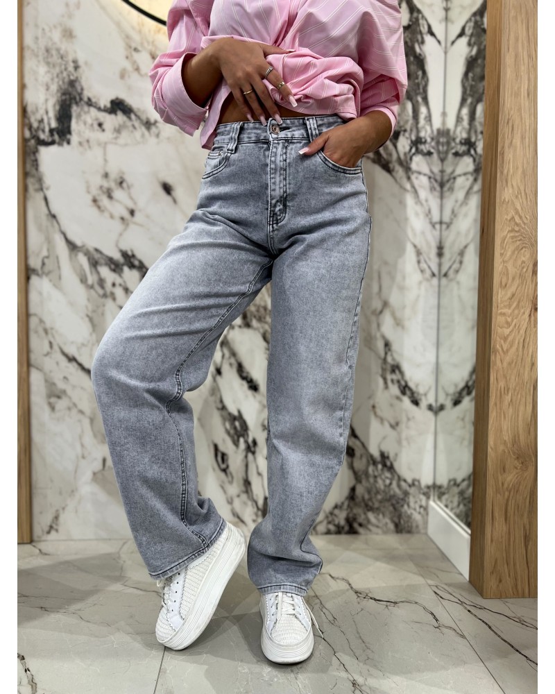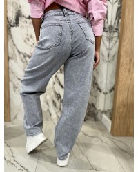 Jasne jeansowe spodnie typu banany o wygodnym kroju z wysokim stanem. Zwężane nogawki pięknie podkreślają sylwetkę, a miękki denim zapewnia komfort noszenia na co dzień.