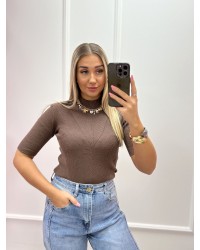 Półgolf prążkowany z krótkim rękawem By o la la...! red kiss
