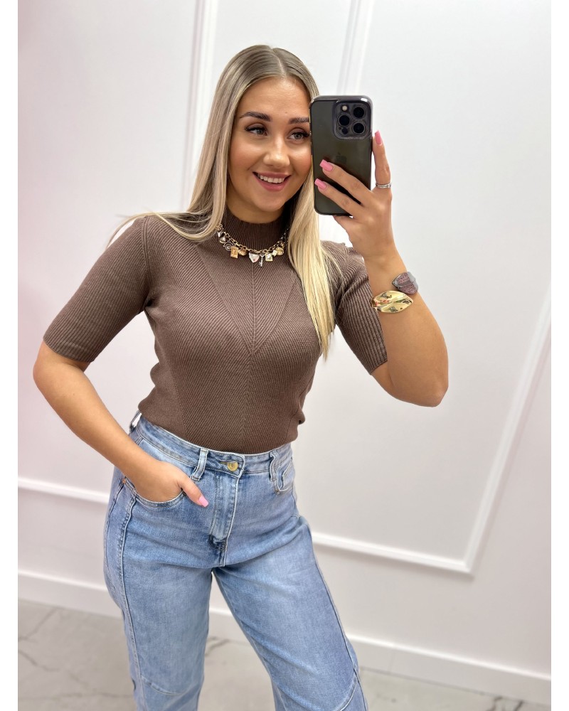 Klasyczny półgolf z prążkowanej dzianiny, który łączy komfort, elegancję i uniwersalność. Miękki, elastyczny materiał delikatnie dopasowuje się do sylwetki, zapewniając wygodę noszenia przez cały dzień. Subtelna struktura prążka nadaje modelowi nowoczesnego charakteru, jednocześnie podkreślając jego ponadczasowy styl.