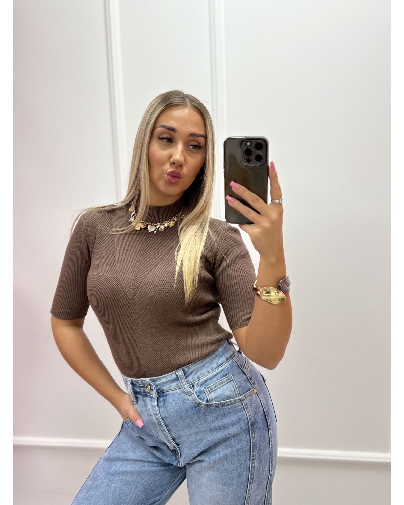 Prążkowany półgolf o dopasowanym kroju, wykonany z miękkiej, elastycznej dzianiny — idealny jako baza wielu stylizacji na co dzień i na chłodniejsze dni.
