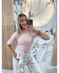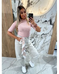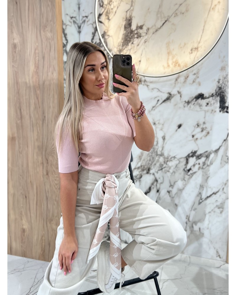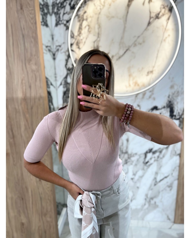 Półgolf prążkowany z krótkim rękawem By o la la...! pudrowy róż