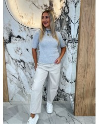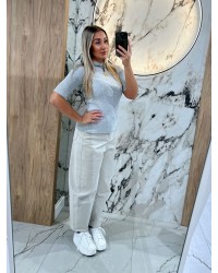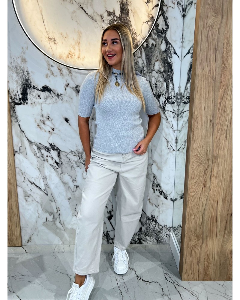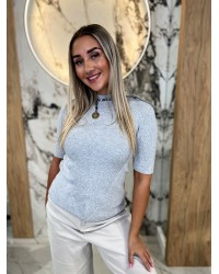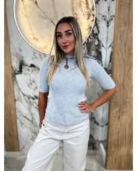 Półgolf prążkowany z krótkim rękawem By o la la...! szary melanż