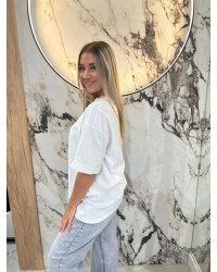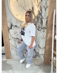 Oversizowy T-shirt o swobodnym, luźnym fasonie, który zapewnia maksymalny komfort i nowoczesny wygląd. Wykonany z miękkiej, oddychającej dzianiny, przyjemnej dla skóry i trwałej w użytkowaniu. Obniżona linia ramion oraz przedłużony krój podkreślają casualowy, modny charakter modelu.