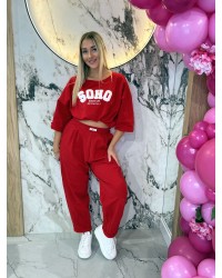Model posiada minimalistyczny, schludny fason z charakterystycznymi kieszeniami i dopasowaną linią nogawki, co nadaje całości nowoczesny, miejski charakter. Elastyczna talia (z gumą lub sznurkiem — w zależności od wersji) gwarantuje idealne dopasowanie i dodatkowy komfort.