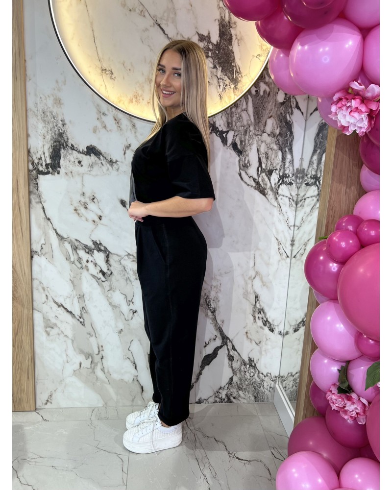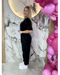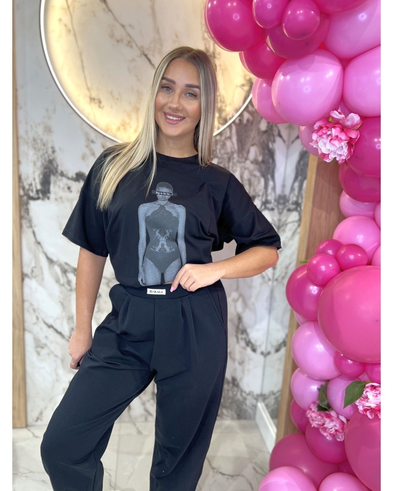 Model posiada minimalistyczny, schludny fason z charakterystycznymi kieszeniami i dopasowaną linią nogawki, co nadaje całości nowoczesny, miejski charakter. Elastyczna talia (z gumą lub sznurkiem — w zależności od wersji) gwarantuje idealne dopasowanie i dodatkowy komfort.