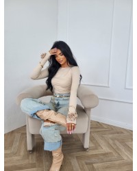 Bluzka z długim rękawem wykończona dekoracyjnymi aplikacjami kwiatowymi przy mankietach. Elastyczna, dopasowana i efektowna, idealna do eleganckich oraz codziennych stylizacji.