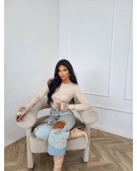Bluzka z długim rękawem i efektownymi aplikacjami kwiatowymi przy mankietach to wyjątkowy model, który łączy prostotę kroju z wyrazistym, modowym detalem. Wykonana z elastycznego, miękkiego materiału, doskonale dopasowuje się do sylwetki i zapewnia wygodę noszenia przez cały dzień.