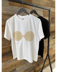 T-shirt z subtelnym haftem boho inspirowanym naturą – lekki, wygodny i idealny do stylizacji w klimacie free-spirited.