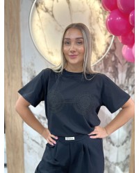 Miękki, oddychający T-shirt ozdobiony starannie wykonanym haftem w stylu boho, inspirowanym motywami natury i rękodziełem. Delikatne, organiczne wzory nadają mu artystyczny, swobodny charakter, idealny dla miłośniczek naturalnych tkanin, luzu i etnicznych akcentów. Uniwersalny krój sprawdzi się zarówno na co dzień, jak i na letnie festiwale, spotkania czy wakacyjne wypady. Łączy komfort z unikalnym, ręcznie zdobionym detalem, który wyróżnia go spośród klasycznych T-shirtów.