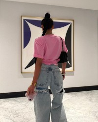 Delikatnie skrócona długość oraz możliwość stylizacji z przodu (np. wiązanie lub marszczenie) pozwalają idealnie dopasować T-shirt do sylwetki i stworzyć modny, kobiecy look. Różowy kolor dodaje świeżości i świetnie komponuje się zarówno z jeansami, jak i spódnicami czy eleganckimi spodniami.