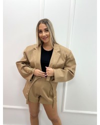 Stylowe spodenki o dopracowanym kroju z wysokim stanem podkreślają sylwetkę i dodają elegancji każdej stylizacji. Model posiada subtelne zakładki, które nadają mu lekkości i nowoczesnego charakteru. Doskonale komponują się zarówno z dopasowanymi topami, jak i oversize’owymi marynarkami, tworząc look idealny na wieczorne wyjścia, spotkania lub modny dzień w mieście. Wykonane z przyjemnego w dotyku materiału zapewniają komfort i świetne dopasowanie do figury.