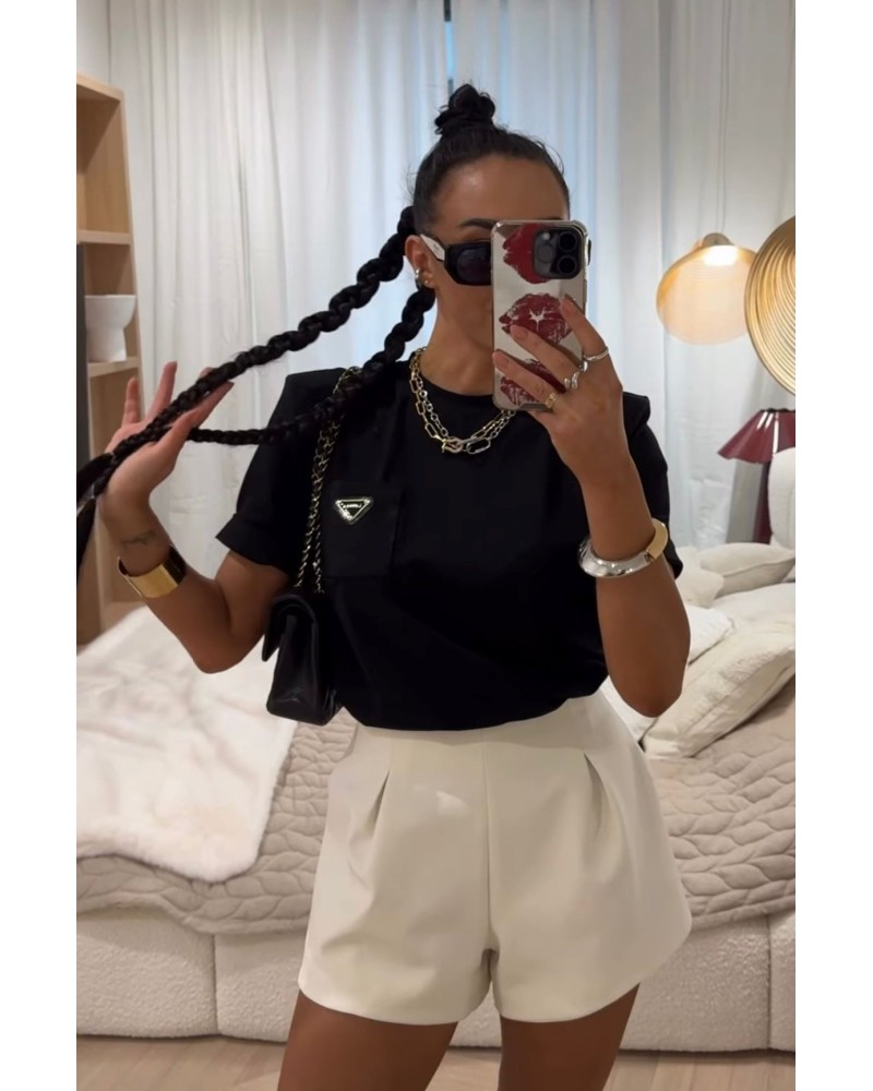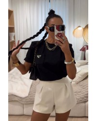 Stylowe spodenki o dopracowanym kroju z wysokim stanem podkreślają sylwetkę i dodają elegancji każdej stylizacji. Model posiada subtelne zakładki, które nadają mu lekkości i nowoczesnego charakteru. Doskonale komponują się zarówno z dopasowanymi topami, jak i oversize’owymi marynarkami, tworząc look idealny na wieczorne wyjścia, spotkania lub modny dzień w mieście. Wykonane z przyjemnego w dotyku materiału zapewniają komfort i świetne dopasowanie do figury.