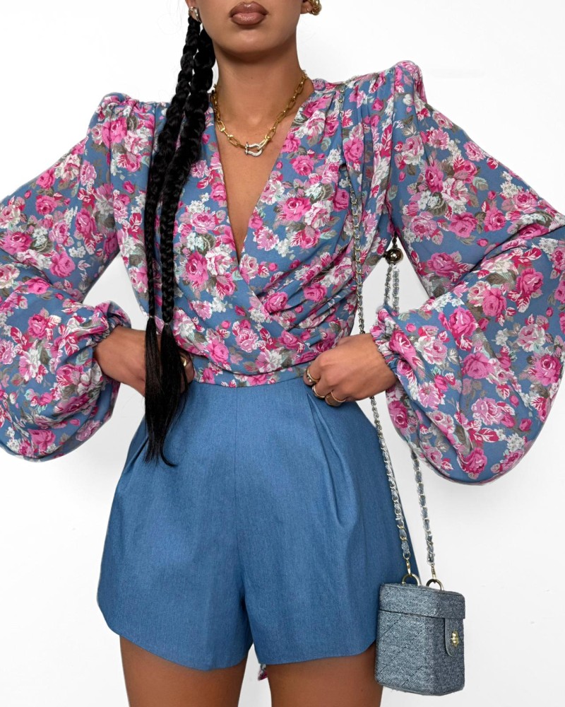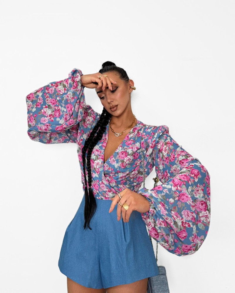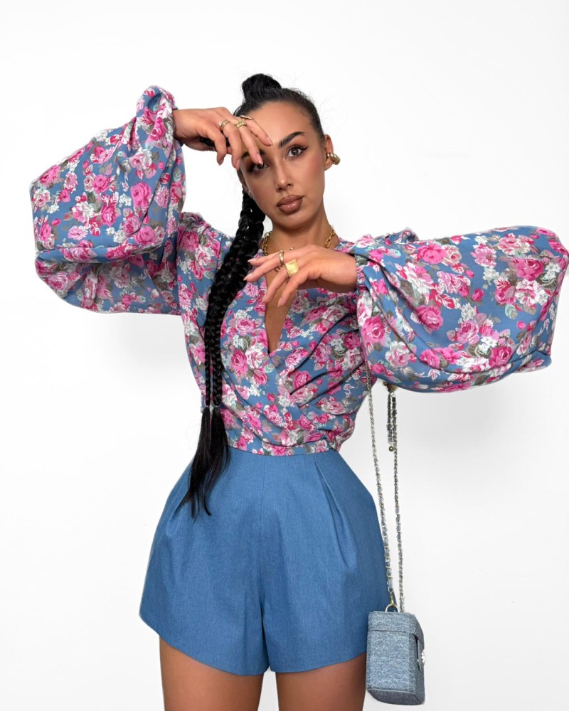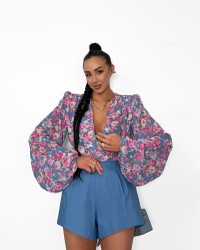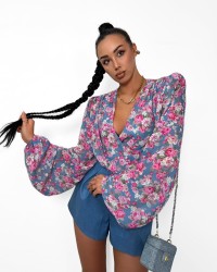 Koszula wiązana w kwiatki La Milla niebieska