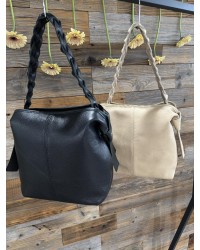 Elegancka i ponadczasowa torebka typu worek, która łączy funkcjonalność z modnym designem. Wykonana z wysokiej jakości, miękkiej skóry o naturalnej fakturze, zachwyca prostą formą i starannym wykończeniem. Charakterystycznym elementem jest efektowny, pleciony pasek, który nadaje całości unikalnego charakteru i podkreśla rzemieślniczy styl torebki.