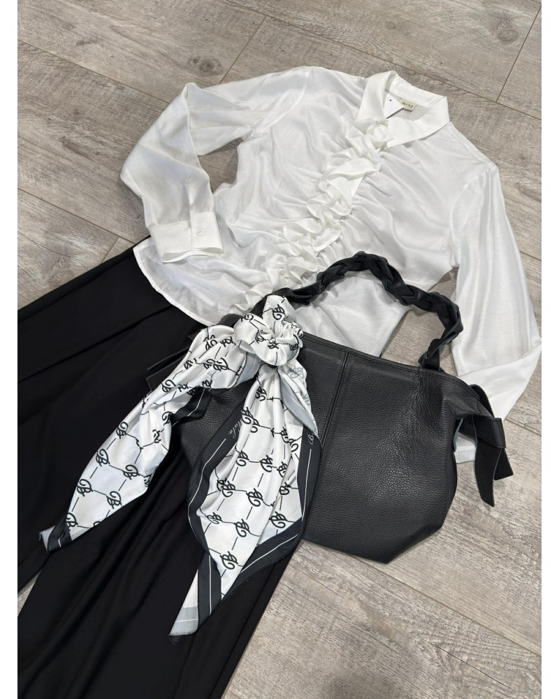 Stylowa torebka typu worek wykonana z wysokiej jakości skóry, z ozdobnym plecionym paskiem. Minimalistyczna forma, wygodna w noszeniu i idealna na co dzień.
