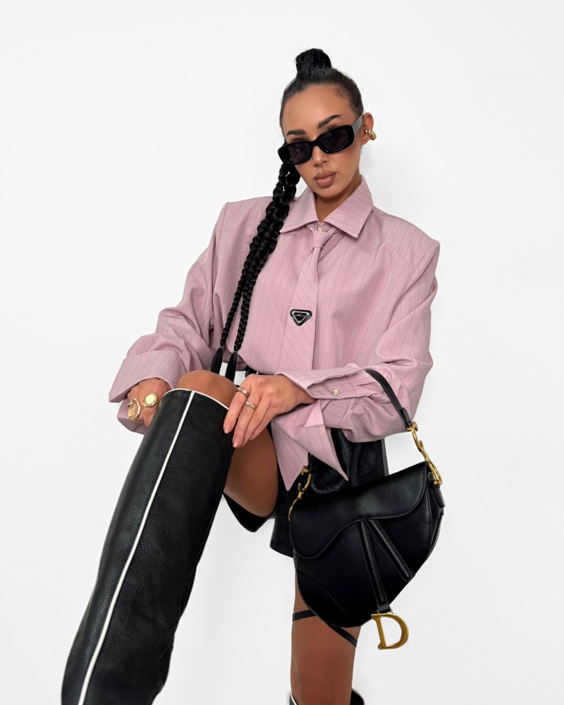 Stylowa koszula oversize z eleganckim krawatem to absolutny hit sezonu – idealna dla kobiet, które kochają modę z charakterem.