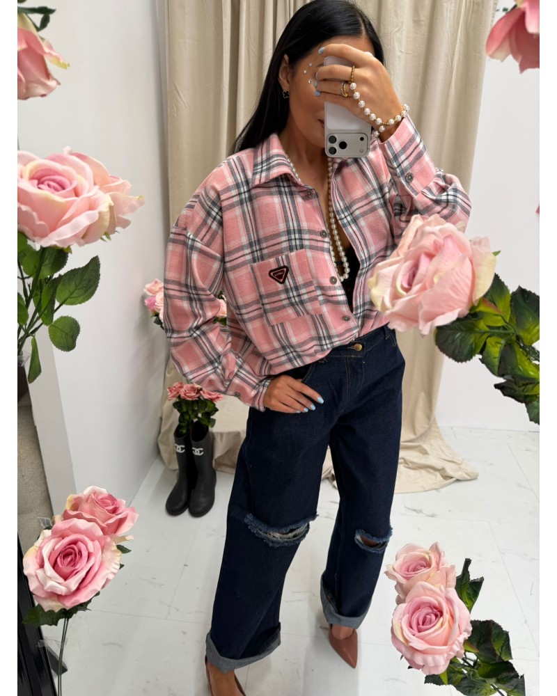 Koszula w kratę La Milla różowa z czarnym