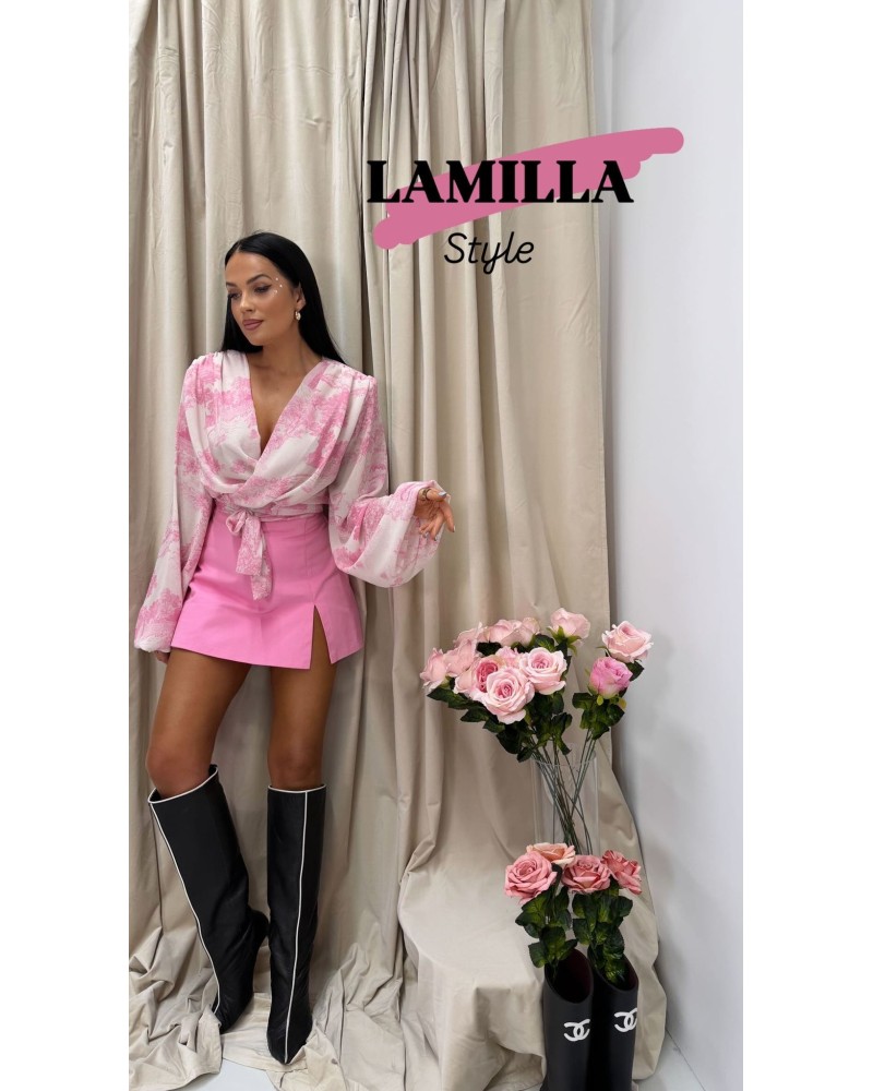 Stylowe spódnico-spodenki w modnym, dziewczęcym odcieniu różu, które łączą kobiecy wygląd spódnicy z wygodą szortów. Dopasowany fason podkreśla talię i biodra, a krótka długość pięknie eksponuje nogi, zachowując jednocześnie komfort noszenia dzięki ukrytej formie spodenek.
