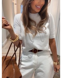 T-shirt z miękkiej dzianiny EMO śmietankowy