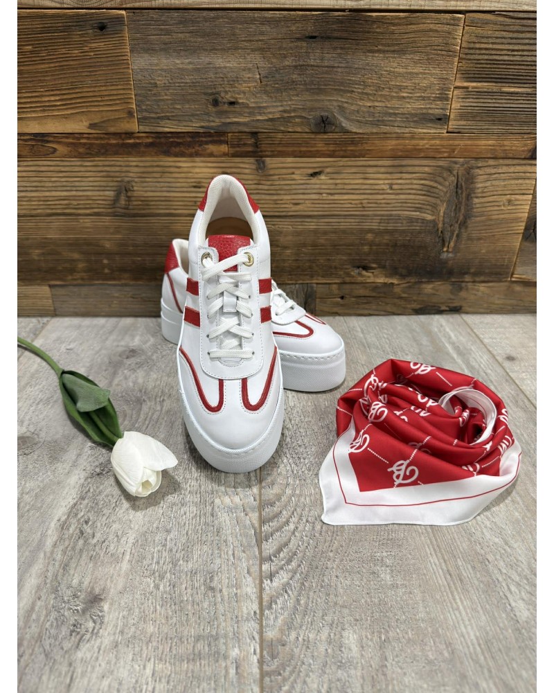 Nowoczesne sneakersy o wyrazistej, dopracowanej formie, które łączą sportowy charakter z modowym designem. Model osadzony jest na solidnej, podwyższonej podeszwie, która nadaje sylwetce lekkości i zapewnia komfort podczas chodzenia. Gładka cholewka została uzupełniona kontrastującymi panelami i ozdobnymi przeszyciami, które budują dynamiczny, stylowy wygląd.