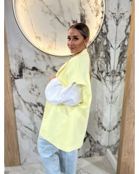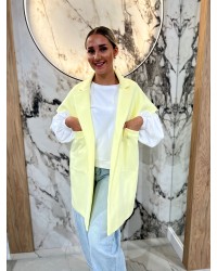 Model posiada klasyczny kołnierz inspirowany krojem koszulowym, co nadaje kamizelce eleganckiego, nowoczesnego charakteru. Luźny fason zapewnia swobodę ruchów i sprawia, że kamizelka doskonale wygląda zarówno noszona solo, jak i warstwowo — na top, koszulkę lub dopasowaną bluzkę.
