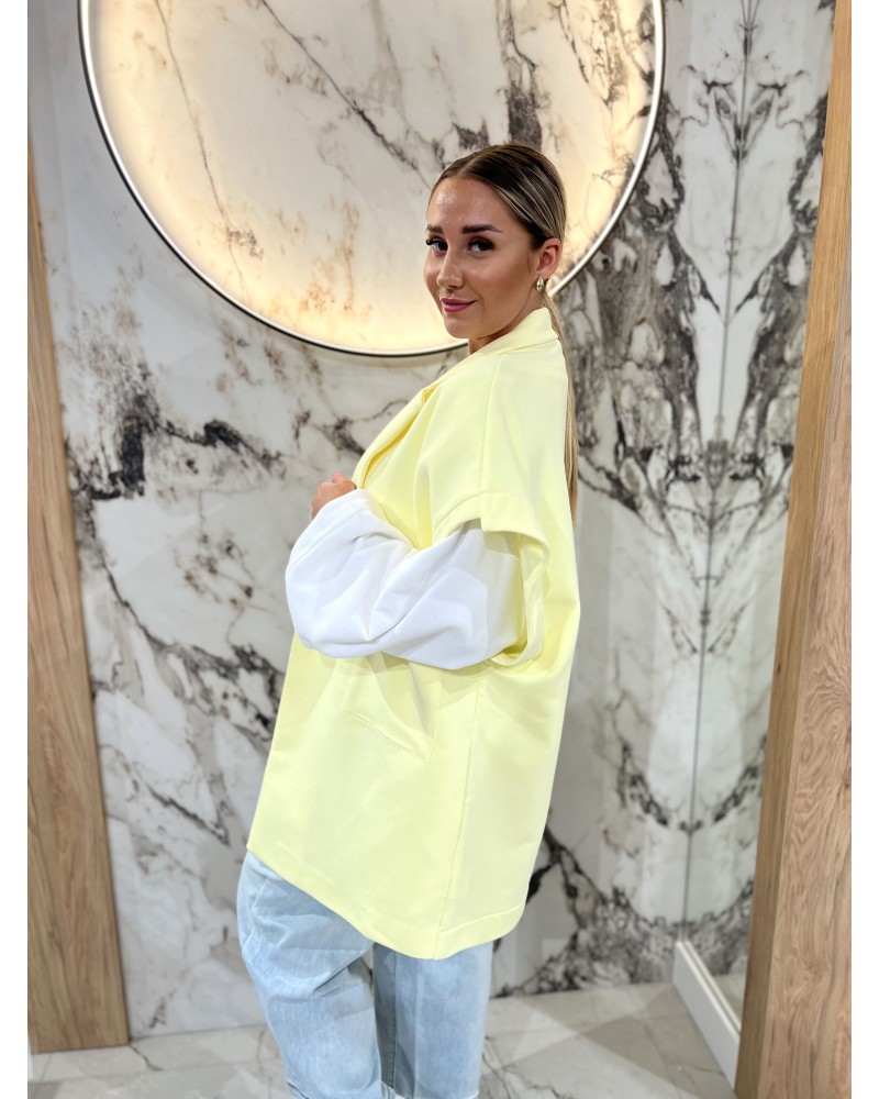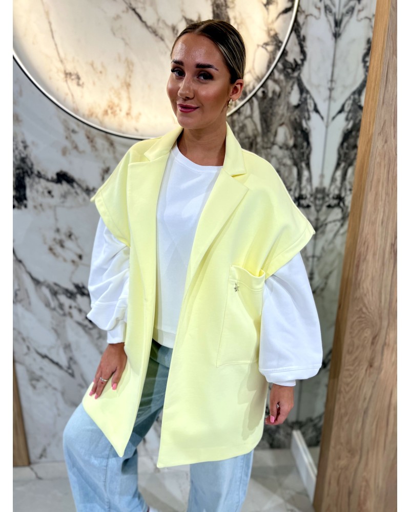 Dresowa kamizelka o luźnym kroju z kołnierzem. Wygodna, miękka i stylowa — idealna do codziennych, sportowo-miejskich stylizacji.