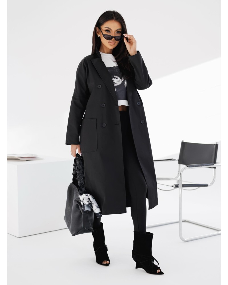 Dwurzędowy płaszcz o prostym, eleganckim kroju z klasycznym kołnierzem i kieszeniami. Ponadczasowa forma w nowoczesnym wydaniu.