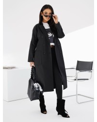 Stylowy płaszcz o klasycznej, wydłużonej linii, który łączy elegancję z minimalistycznym designem. Dwurzędowe zapięcie podkreśla jego ponadczasowy charakter, a prosty fason sprawia, że model doskonale układa się na sylwetce. Klasyczny kołnierz i duże, naszywane kieszenie nadają całości wyważonego, miejskiego stylu.