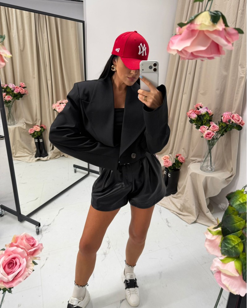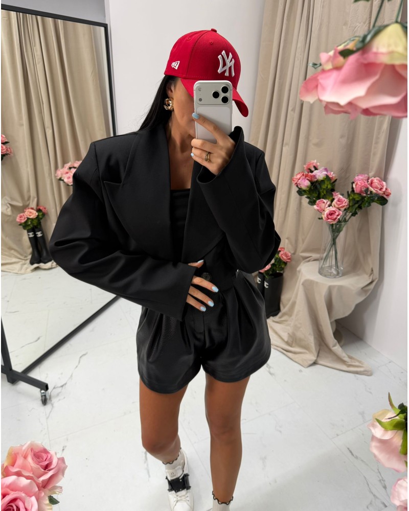 Wyrazista marynarka o skróconym fasonie, inspirowana klasycznym krawiectwem, ale podana w nowoczesnej, designerskiej formie. Oversize’owa linia ramion nadaje sylwetce struktury i charakteru, a skrócona długość podkreśla proporcje i dodaje stylizacji modowego wyrazu. Dwurzędowe zapięcie oraz szerokie klapy nawiązują do klasycznego tailoringu, tworząc elegancką, ale zdecydowaną formę.