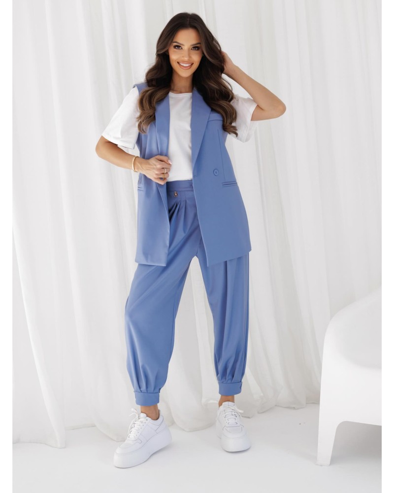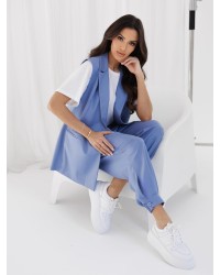 Stylowa kamizelka inspirowana klasycznym krawiectwem, zaprojektowana w nowoczesnej, wydłużonej formie. Model posiada wyraźne klapy nawiązujące do konstrukcji marynarki, co nadaje całości eleganckiego, dopracowanego charakteru. Prosta linia oraz subtelne kieszenie podkreślają minimalistyczny design i sprawiają, że fason prezentuje się niezwykle stylowo.