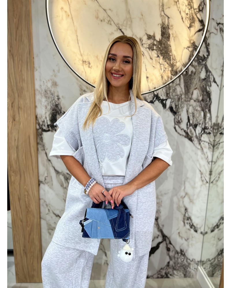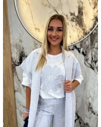 T-shirt stokrotka By o la la...! biały z szarym