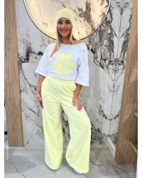 Stylowy t-shirt o swobodnym kroju, który łączy wygodę z wyrazistym detalem. Klasyczny, prosty fason z okrągłym dekoltem i lekko opadającą linią ramion zapewnia komfort noszenia i świetne układanie się na sylwetce. Przód zdobi duża aplikacja w formie kwiatu, która nadaje modelowi charakteru i modowego akcentu.