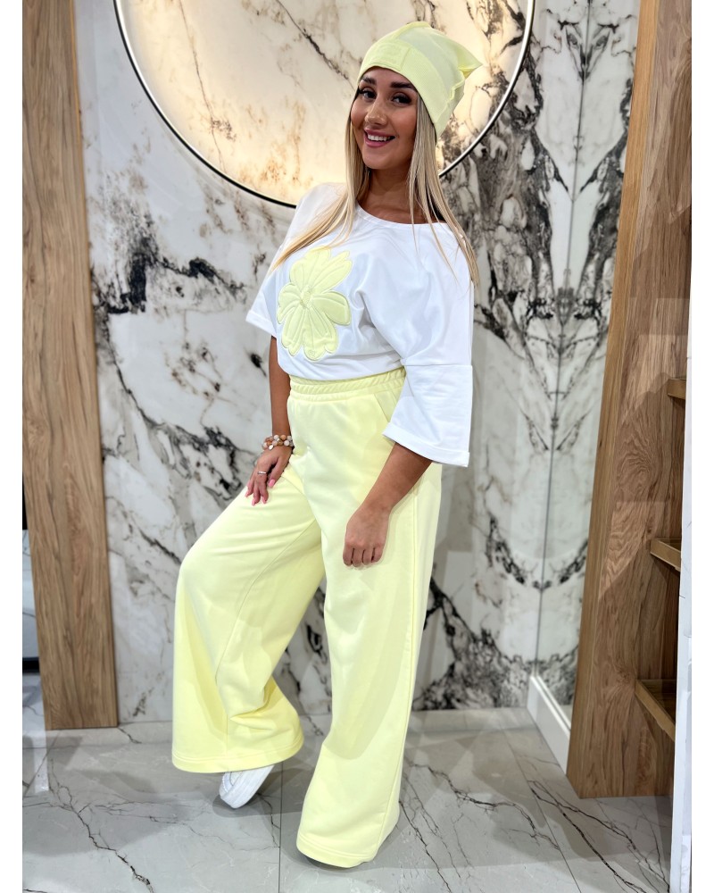 Luźny t-shirt z efektowną aplikacją kwiatową. Komfortowy fason w casualowym, modowym wydaniu.