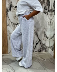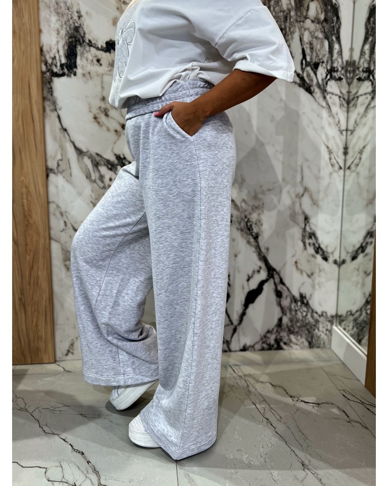 Spodnie dresowe z szeroką nogawką By o la la...! szary melanż